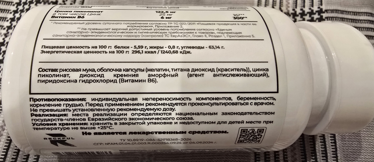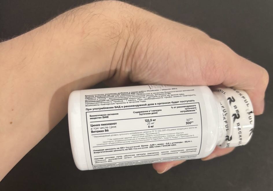 Первый раз попробовал заказать цинк от данной фирмы , цинк формы пиколинат один из лучших форм, покупал от других брендов цинк работал, от рэк фул еще не покупал , взял для пробы, попробуем посмотрим, пробовал предтрен от рэк фул он работал, купил еще креатин от рэк фул , начал употреблять … посмотрим Вообщем попробую , спустя время отпишусь расскажу работает ли цинк от рэк фул Все товарищи пользуются данным брендом говорят есть рабочие продукты у них Буду покупать еще если реально работает А так упаковка классная И баночки очень красиво сделаны , видно не жалеют на упаковке своего товара
