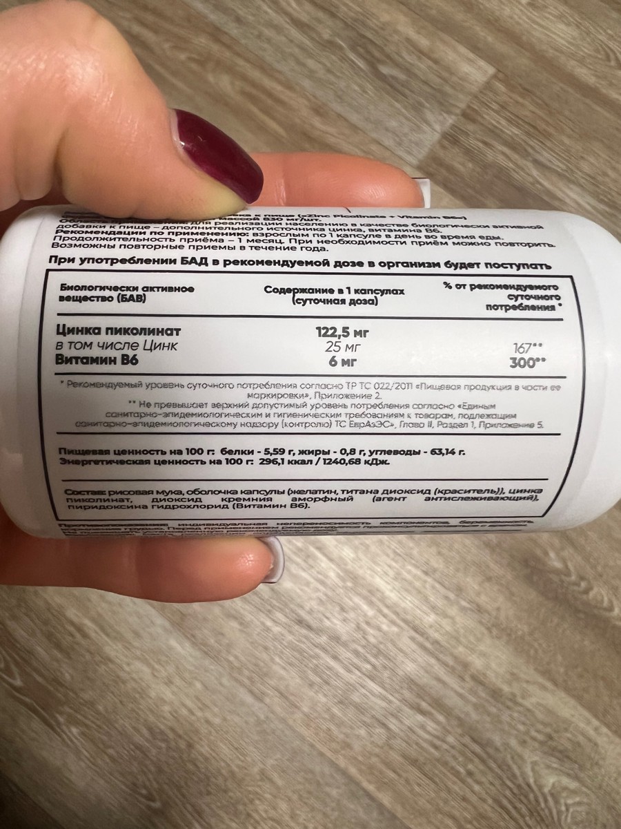 Пробовала несколько продуктов этой марки - впечатлили Цинк норм, отличная, усвояемая форма - пиколинат, концентрация рабочая - 25мг Таблетки пить не сложно - размер оптимальный По эффекту конечно рано судить, уверена что будет - у ребят хороший подход к качеству сырья