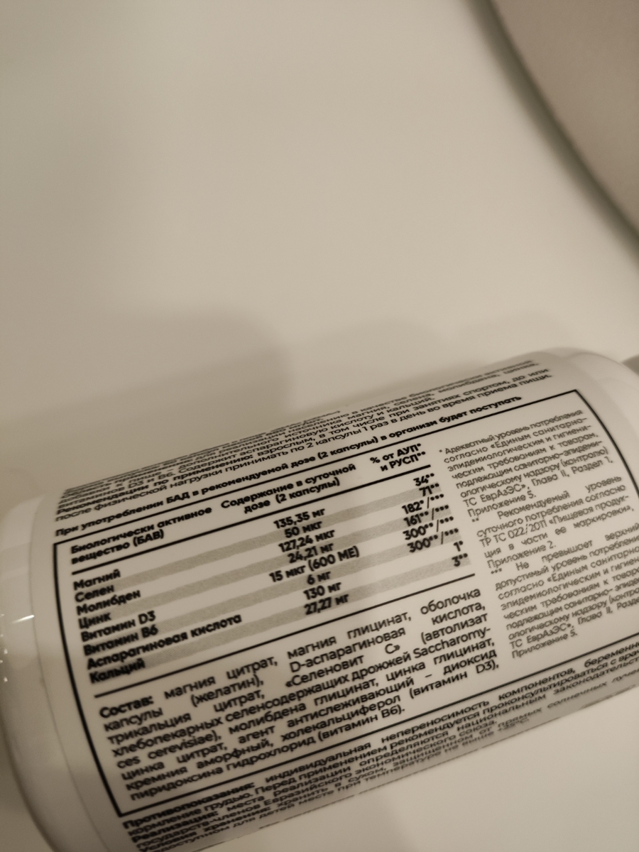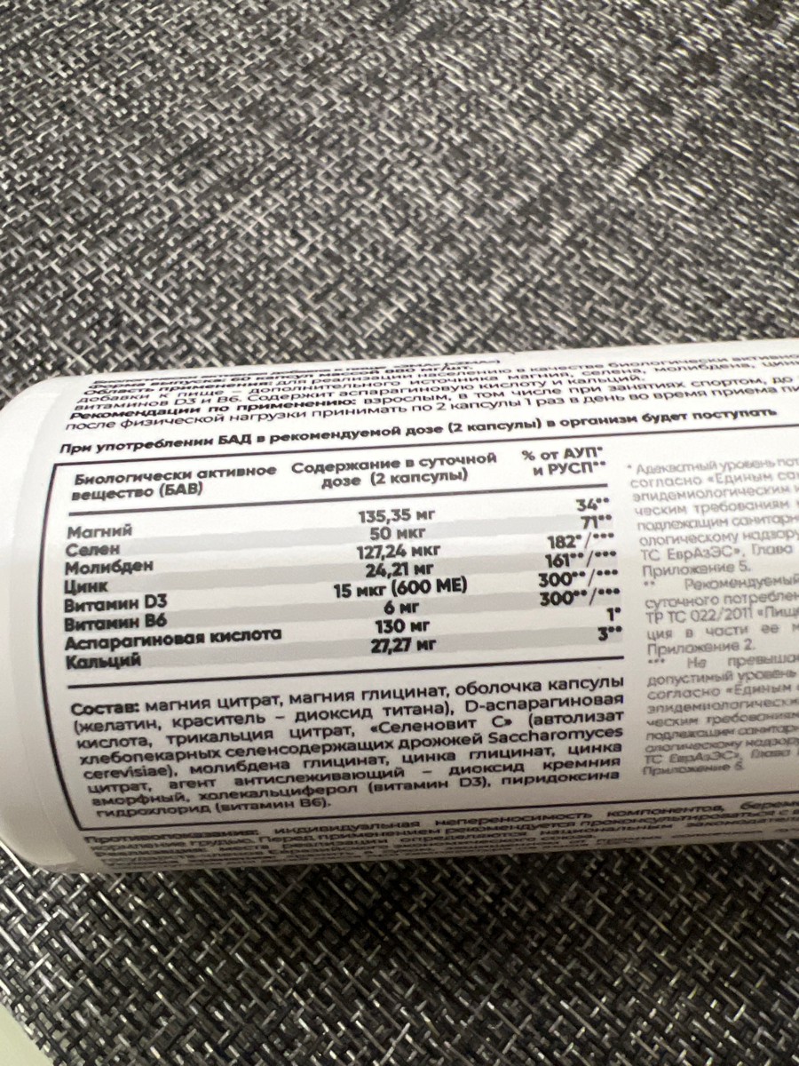 Купил данный товар по совету тренера, принимаю уже несколько дней, с утра стало подниматься немного легче, сон действительно стал качественнее, а так как я отец двоих со сном большие проблемы, общее состояние тоже улучшилось. Пить удобно, утром и вечером по капсуле, сбалансированное сочетание магния и цинка, а также селена, молибдена, d3 b6 и кальция. Покупкой доволен, заказал также отцу.